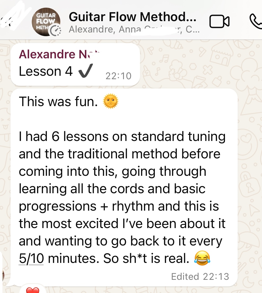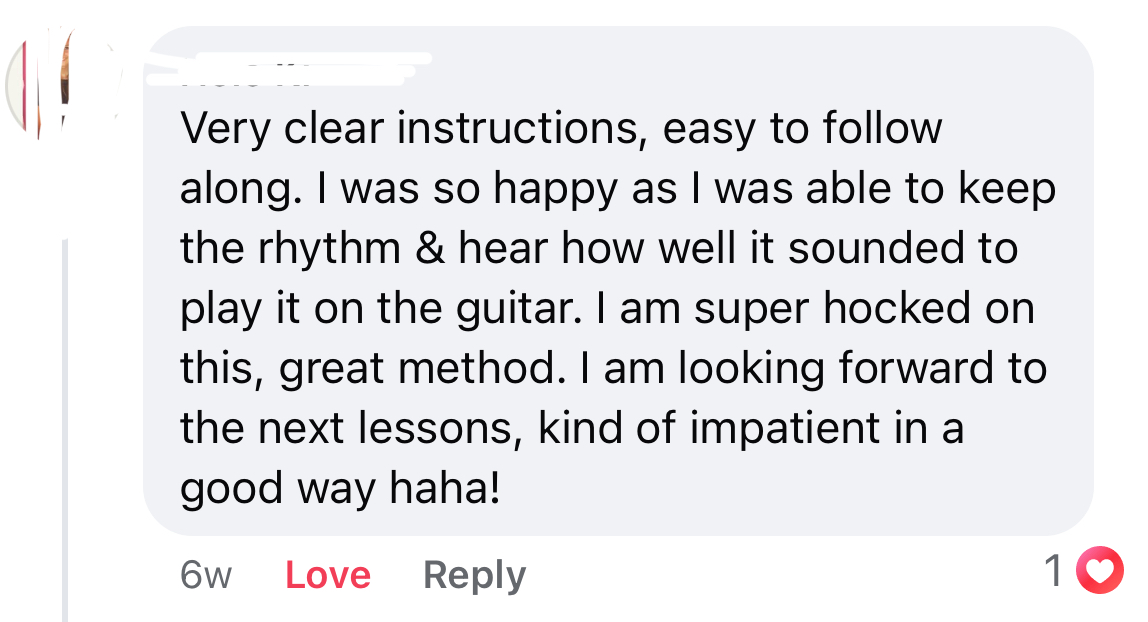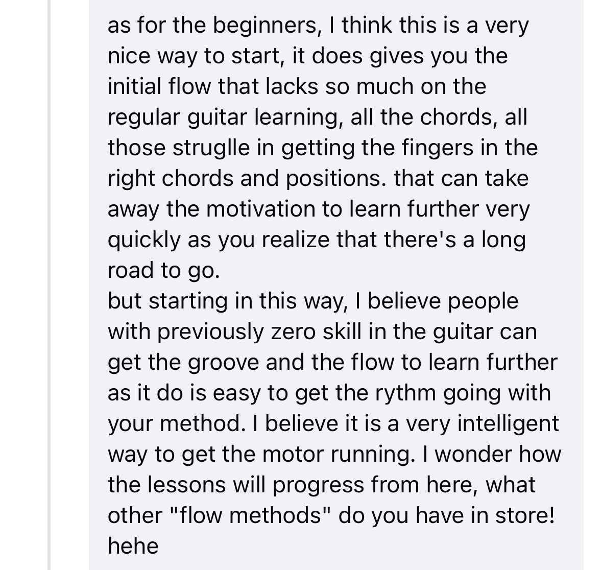 “It truly is the Flow Method. Like, you get into the flow so easily. You really feel like you can play the guitar after the course.”